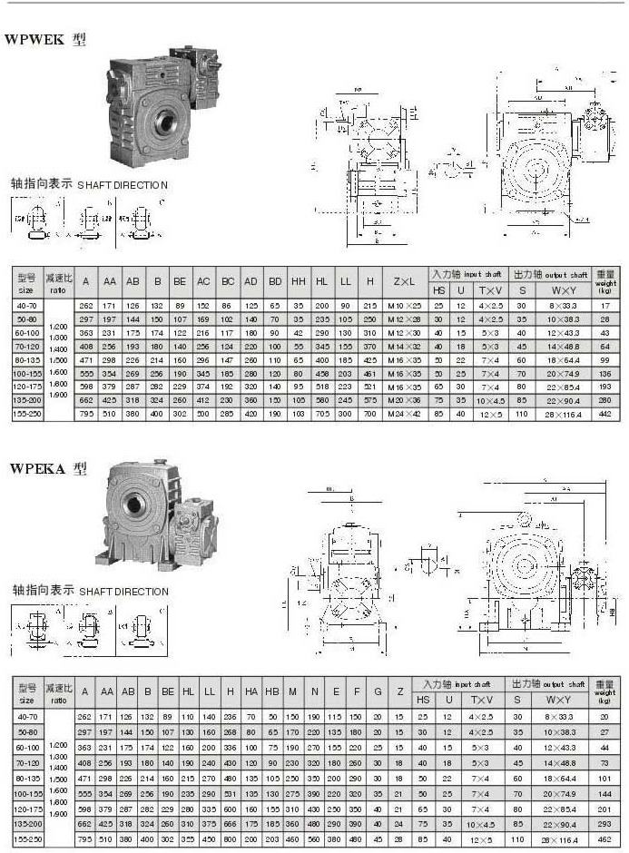 WPWEK,WPEKA型型號(hào)參數(shù)圖表