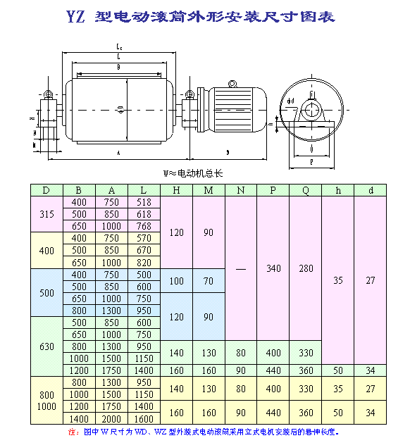 (1)因目前外裝式電動(dòng)滾筒尚未制定相關(guān)行業(yè)標(biāo)準(zhǔn),本廠將該型號(hào)電動(dòng)滾筒首位代號(hào)用W(“外裝”的首位漢語拼音)表示。外裝式電動(dòng)滾筒外置電機(jī)可分為立式電機(jī)和臥式電機(jī),用戶訂購時(shí)請加以說明;